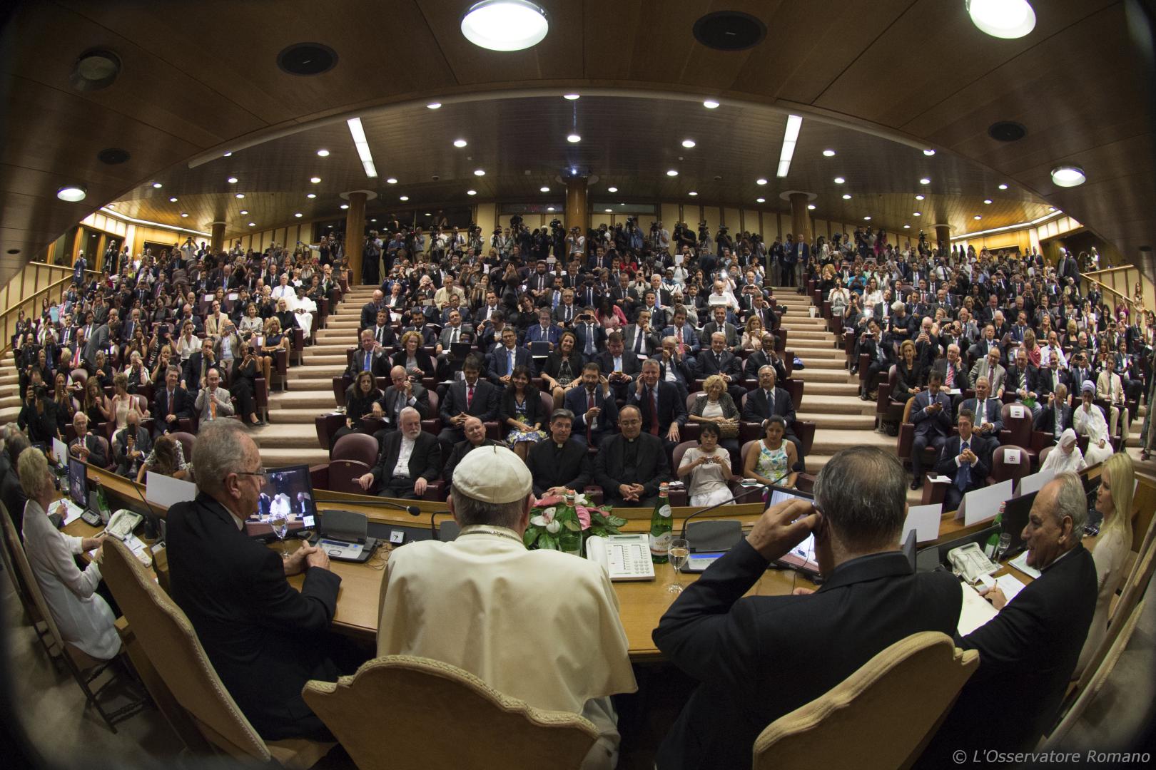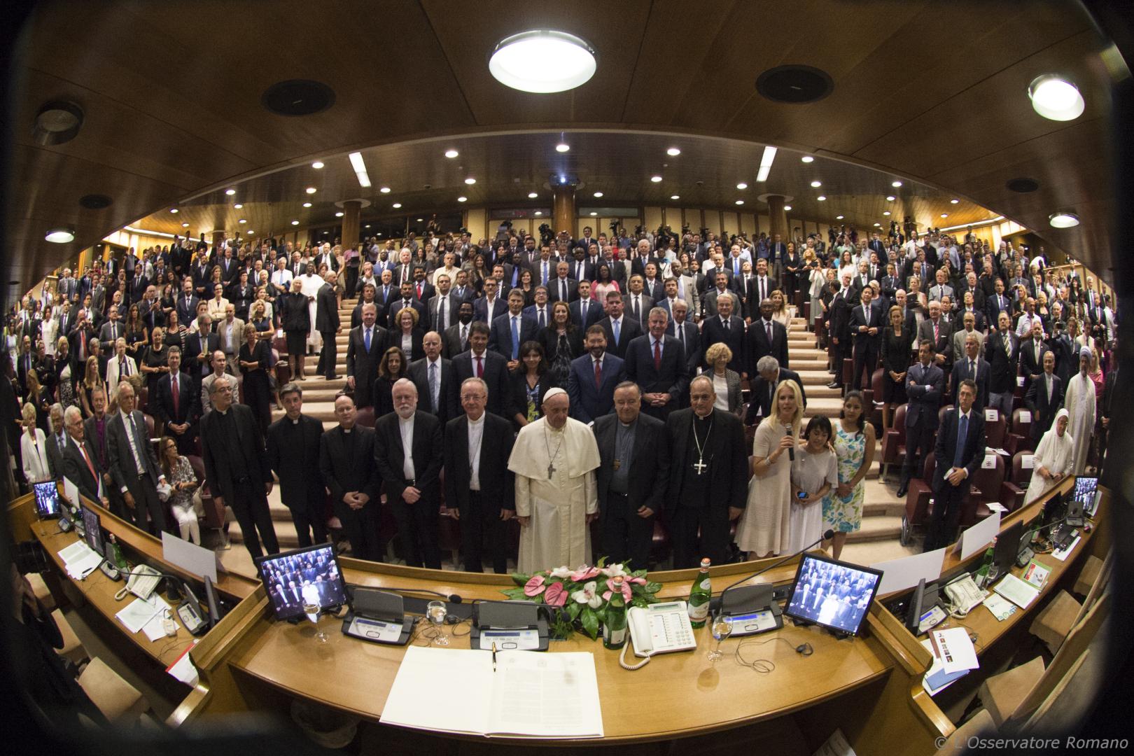 Foto do papa Francisco com os prefeitos no Vaticano
